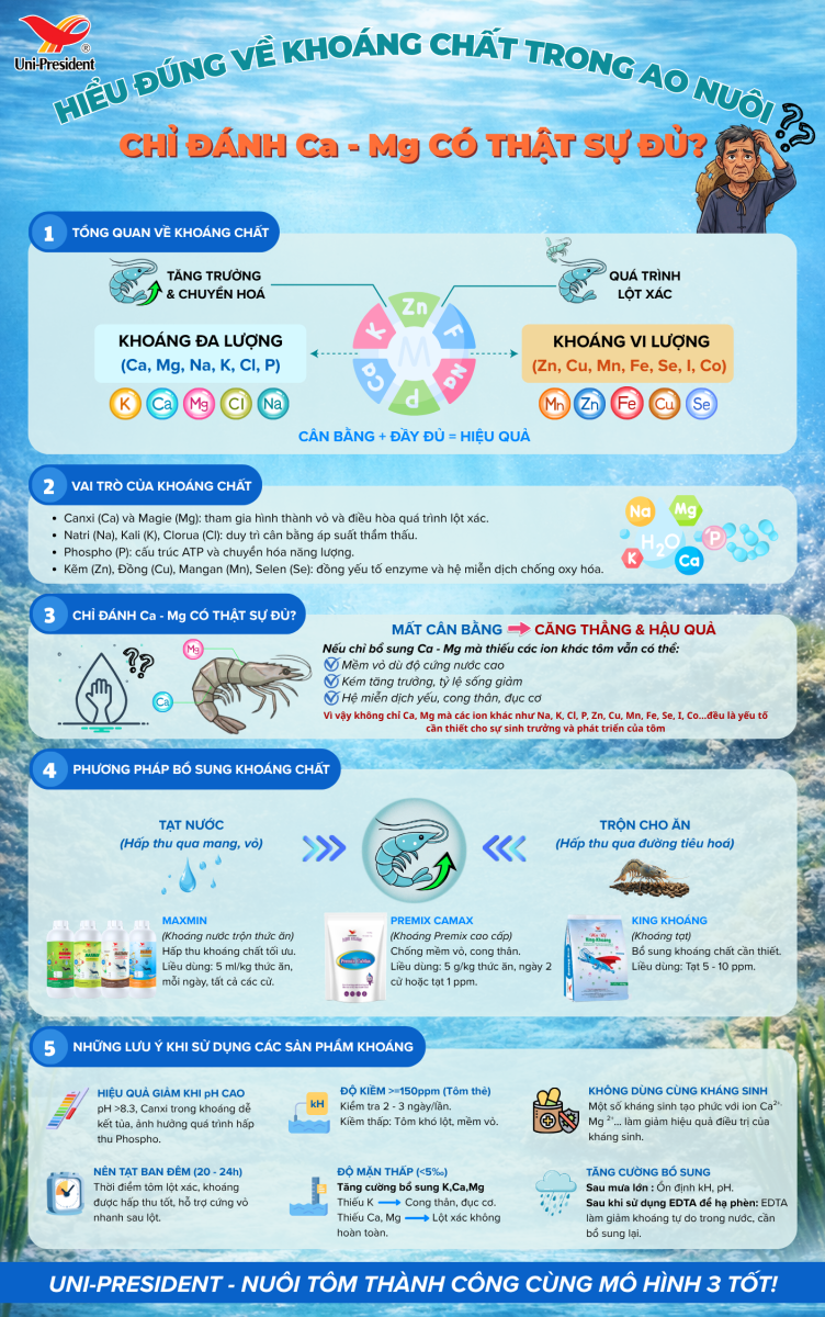 Minerals are not just supplements, they are the foundation that determines shrimp growth rate, molting performance, and immune strength.